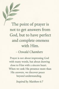 “The point of prayer is not to get answers from God, but to have perfect and complete oneness with Him.” — Oswald Chambers