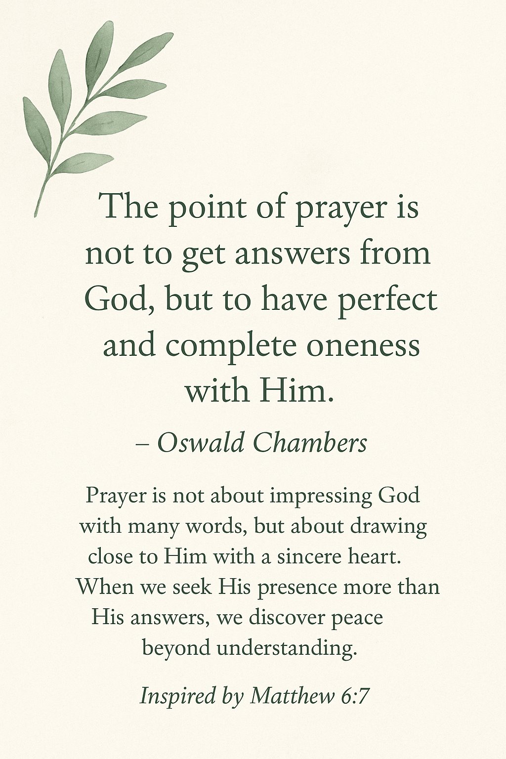 “The point of prayer is not to get answers from God, but to have perfect and complete oneness with Him.” — Oswald Chambers